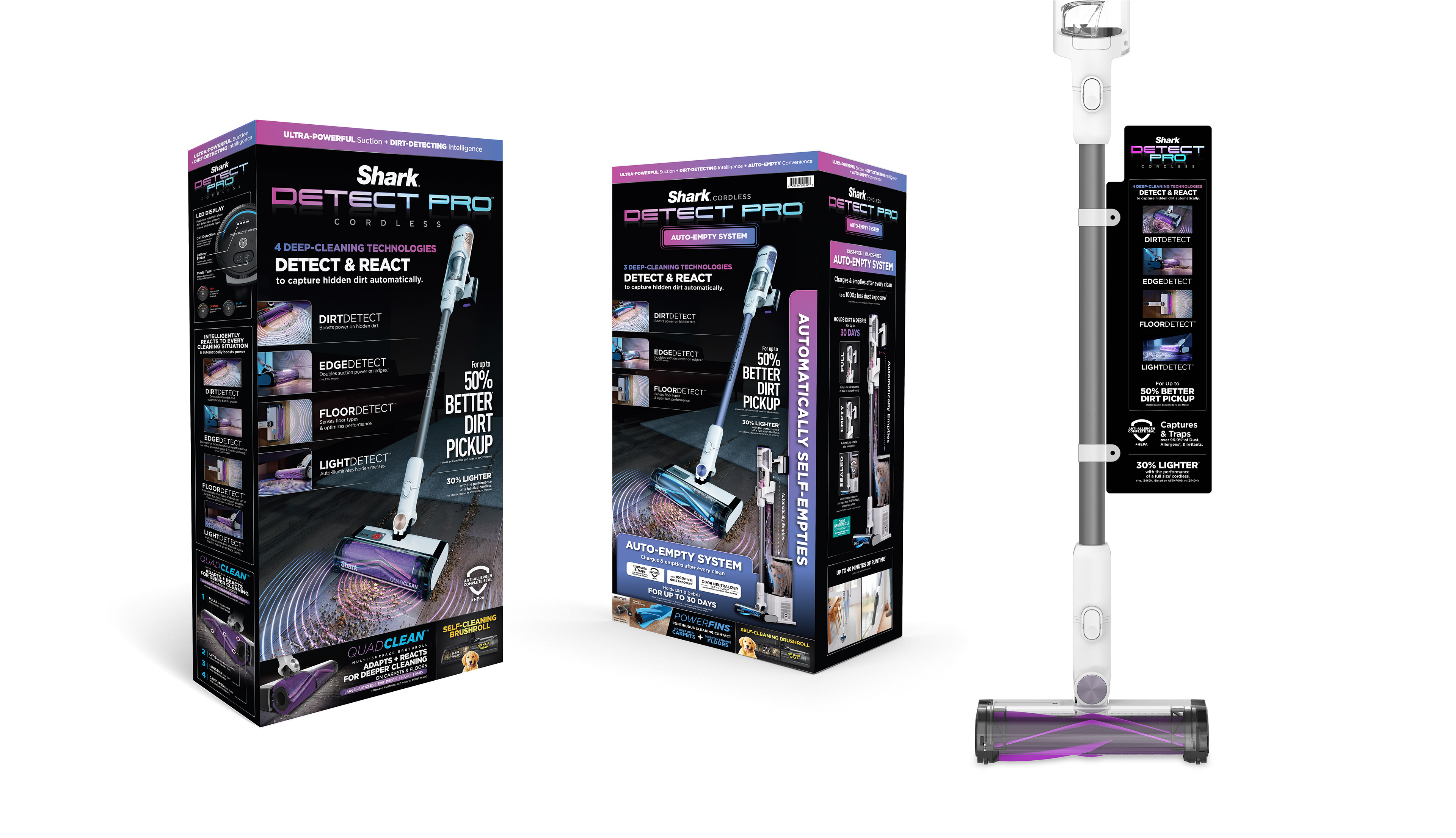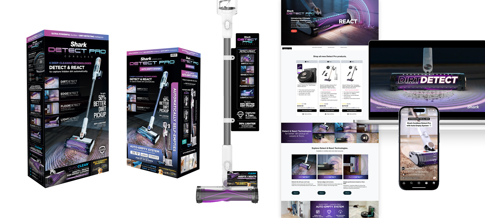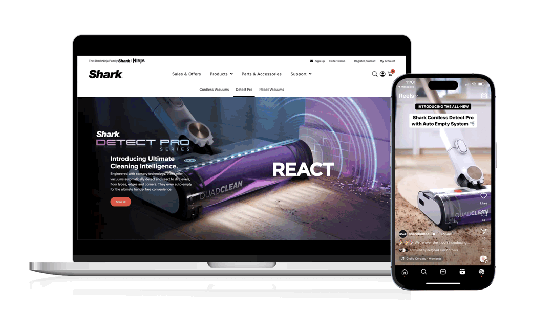 The Shark DetectPro Self-Emptying Cordless Stick introduced breakthrough technologies that automated cleaning and propelled the brand into a new era of smart products. To mark this pivotal launch, I developed the look and feel for the program and oversaw the creative process through the full-funnel marketing campaign.