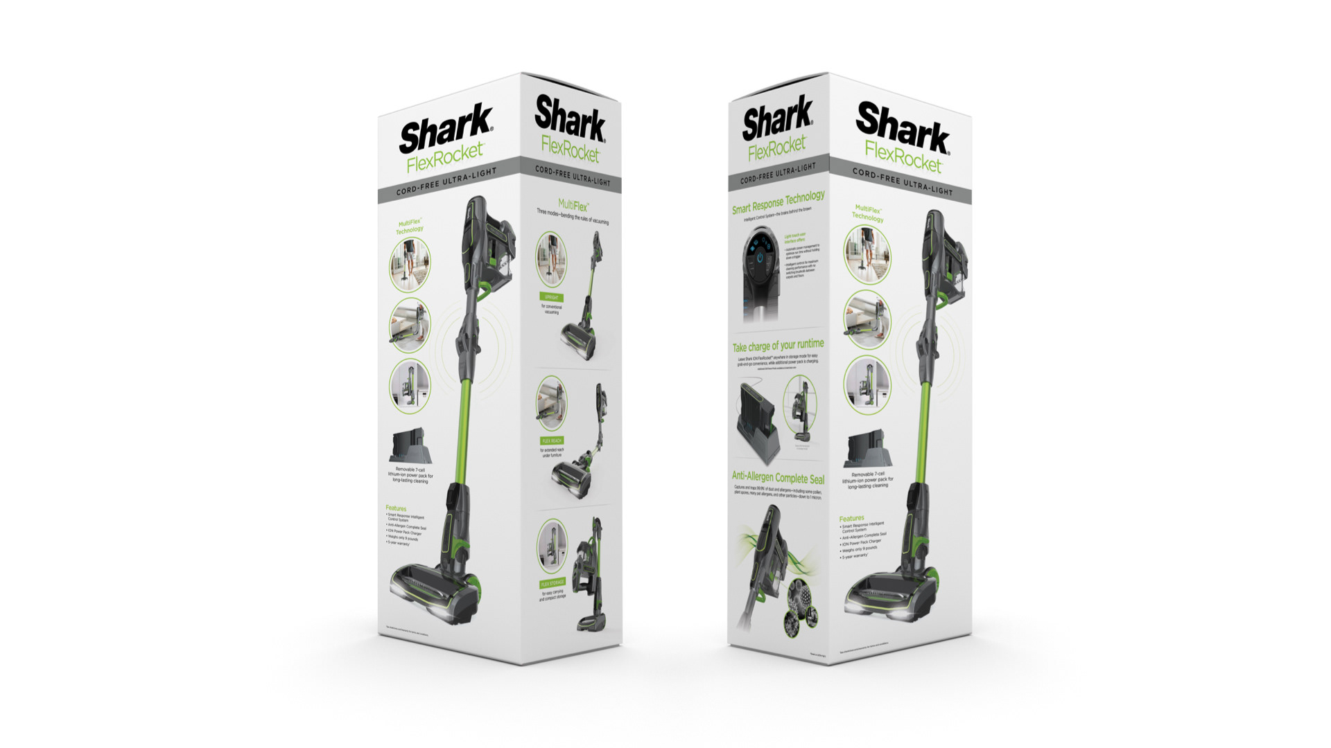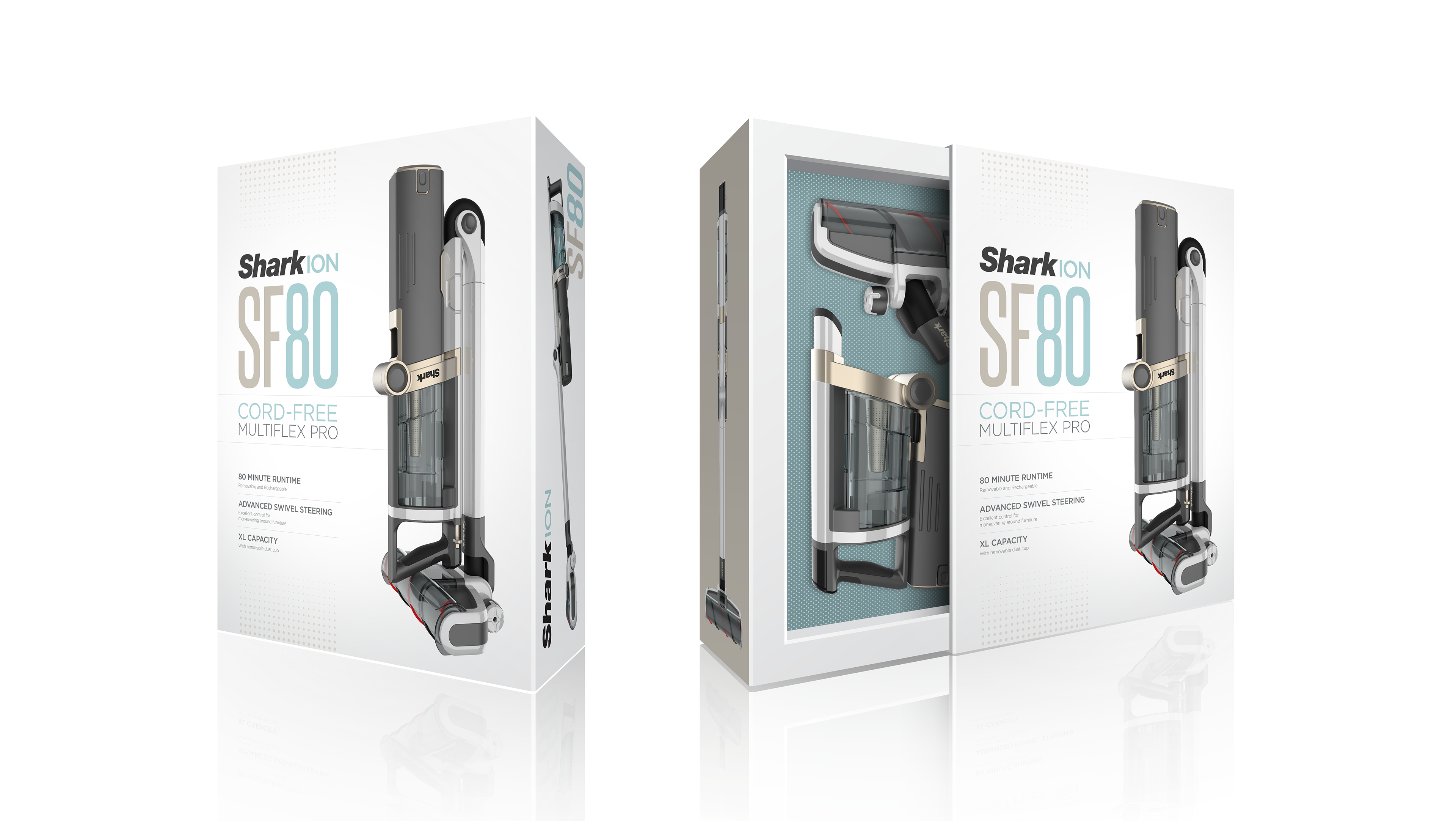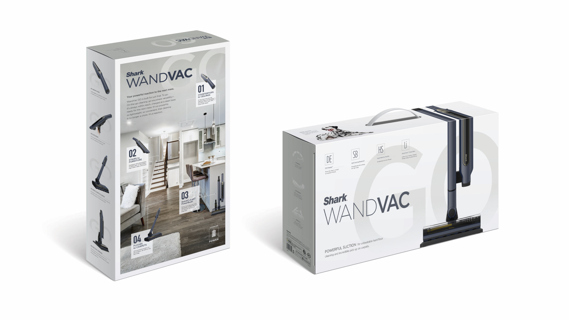 For Shark’s entry into the cordless stick vacuum market, I developed the EB1 packaging along with POP concepts and product branding for its battery technology.