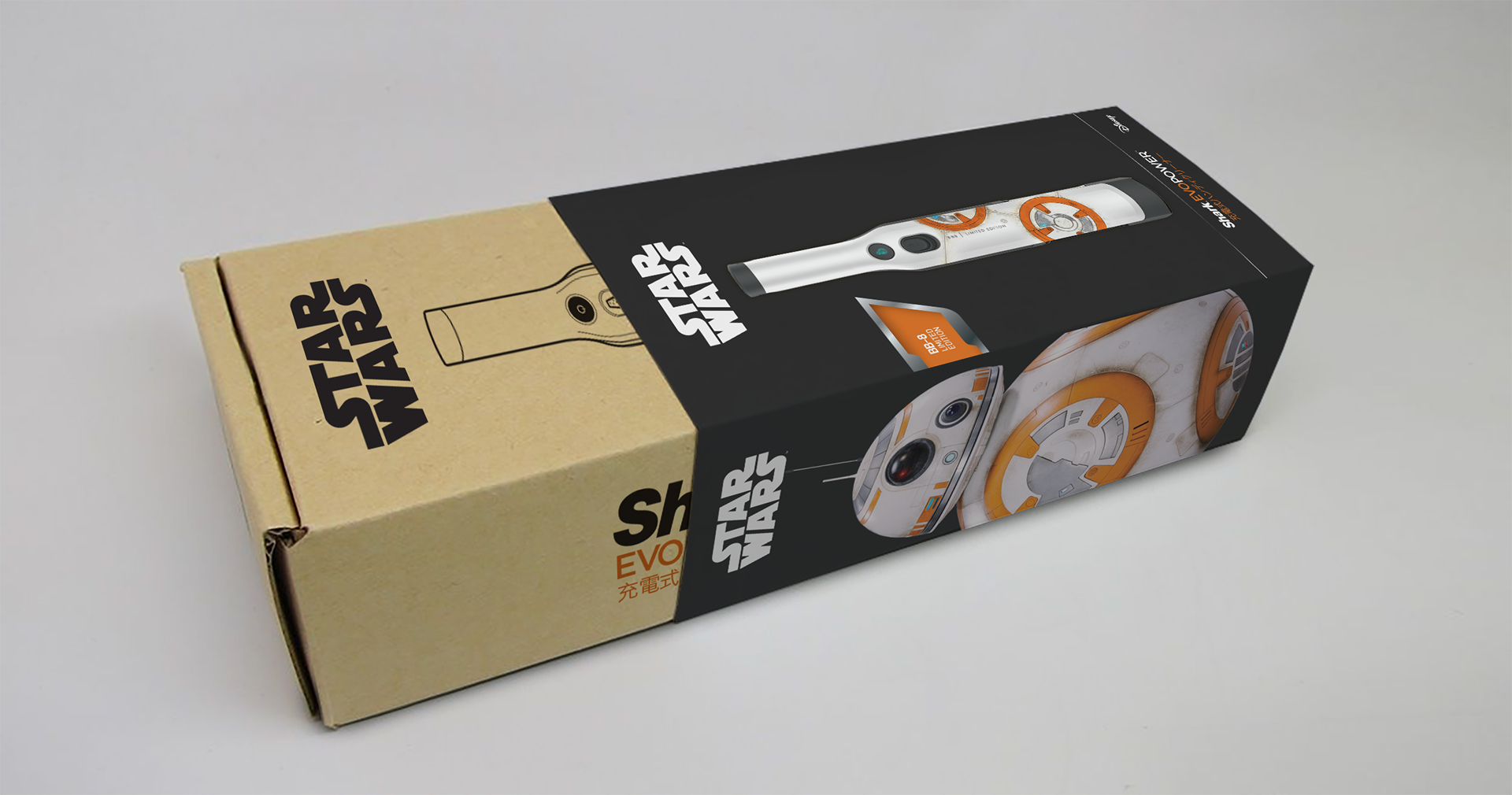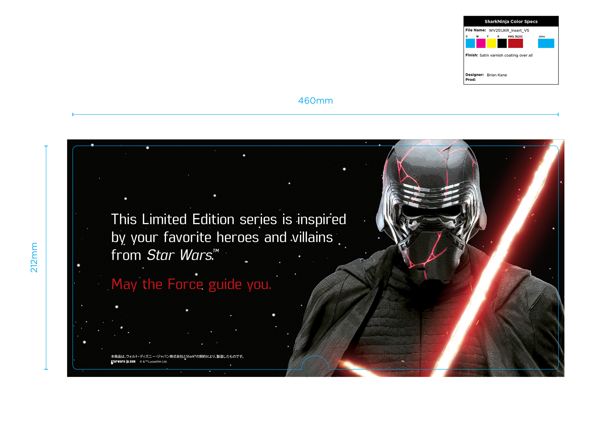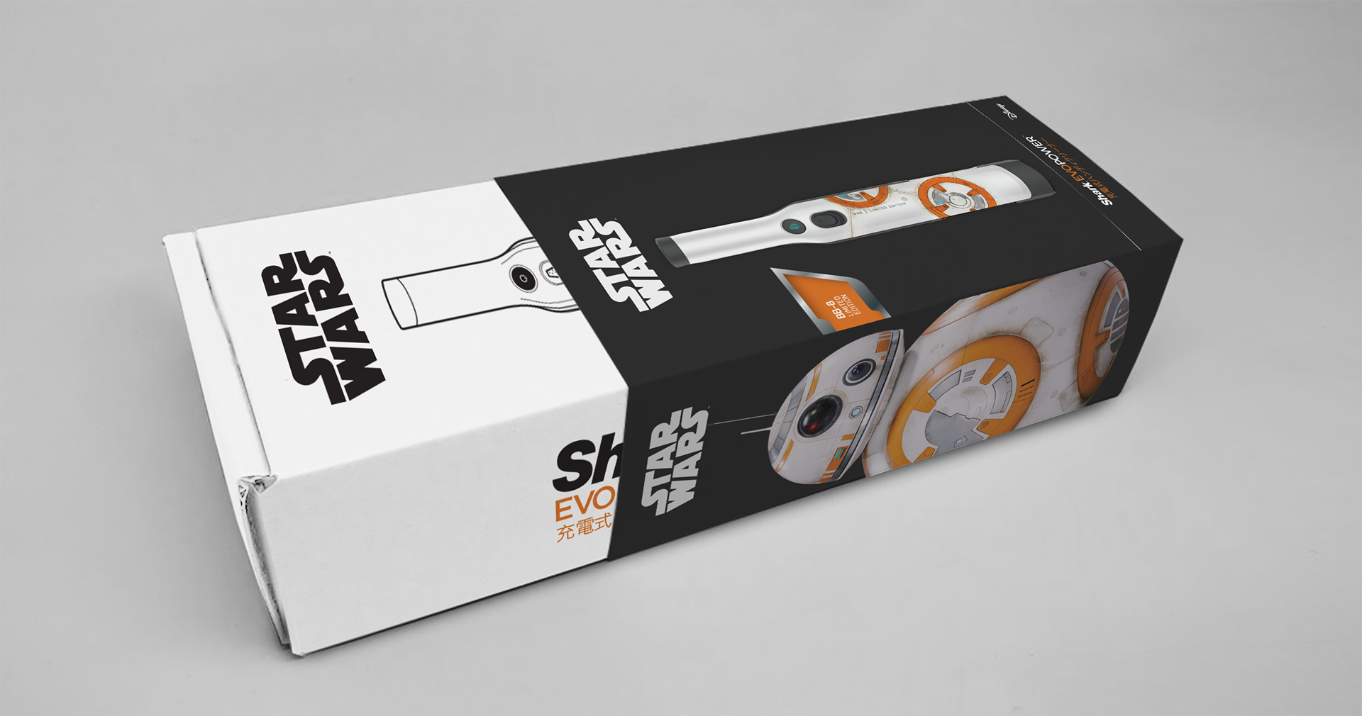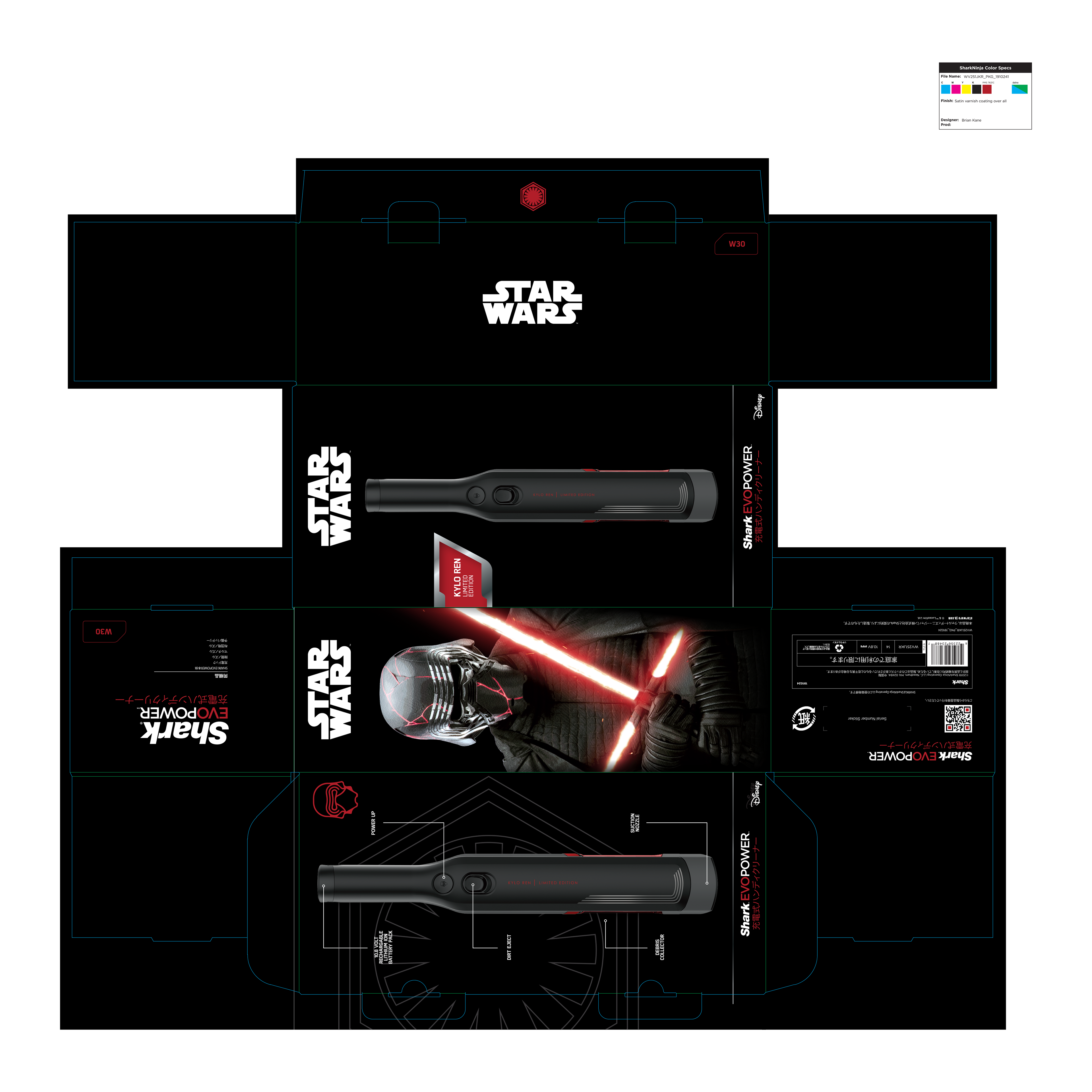 Kylo Ren themed package: 1-color tray with vacuum-formed inner tray + 4-color outer sleeve.