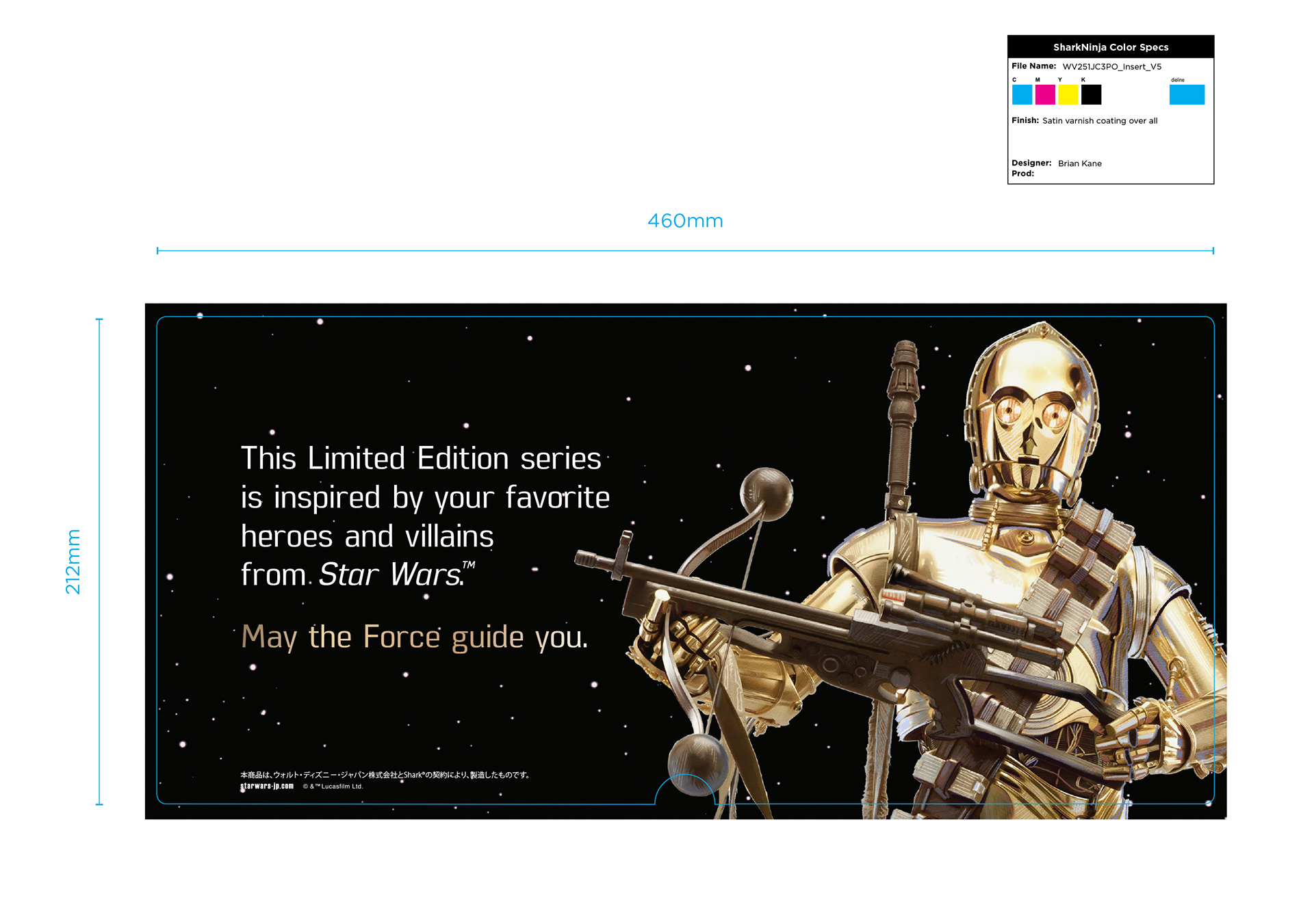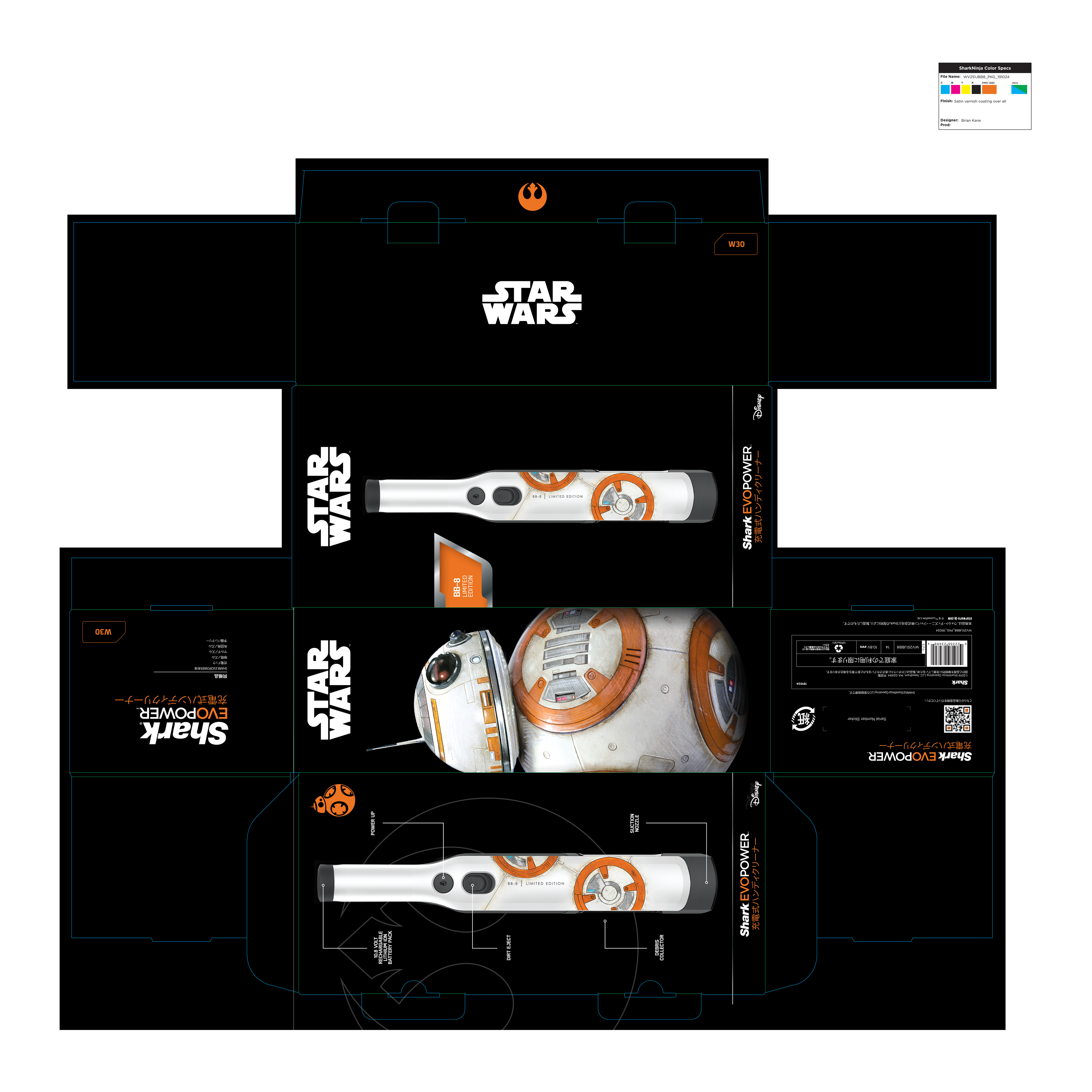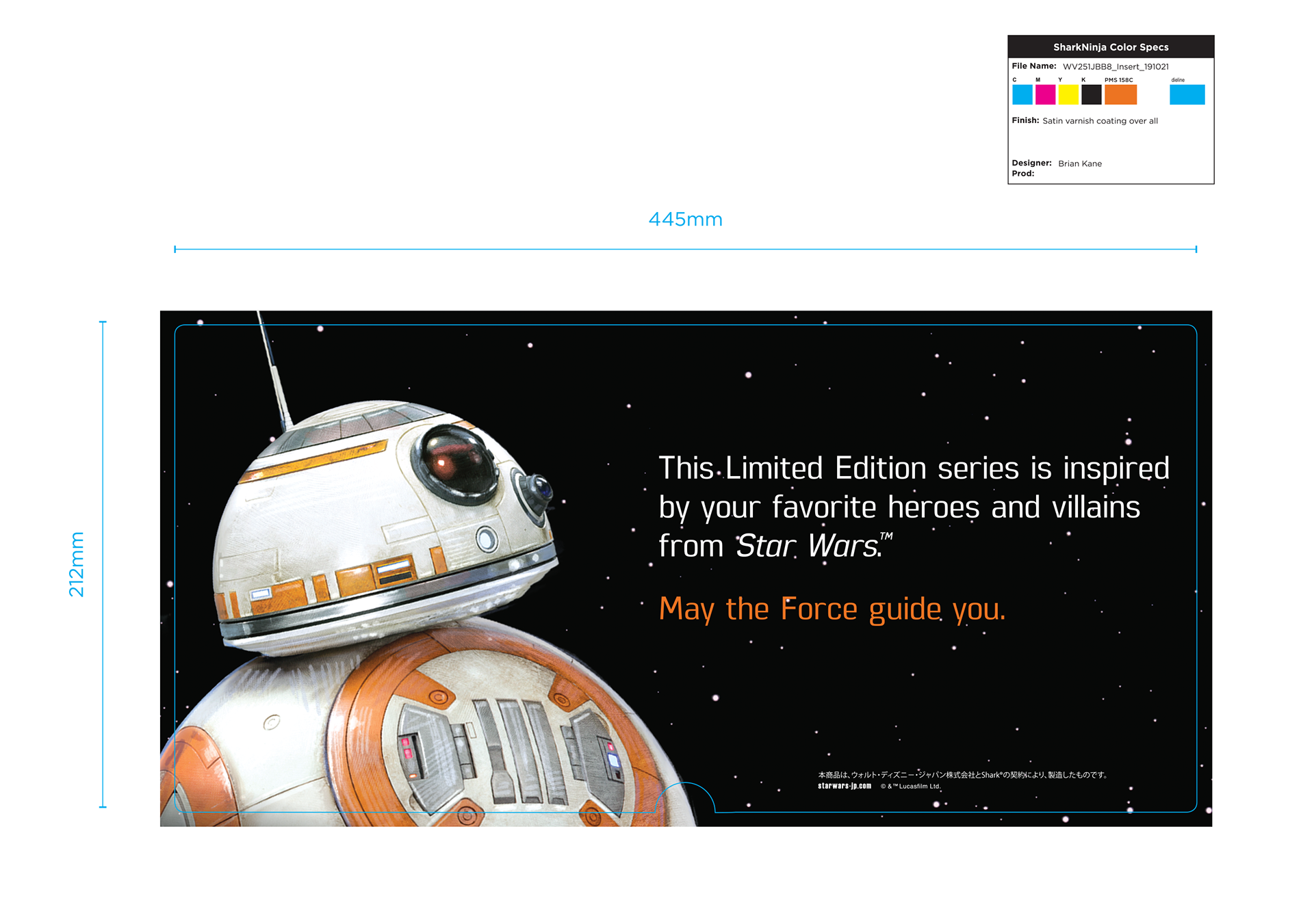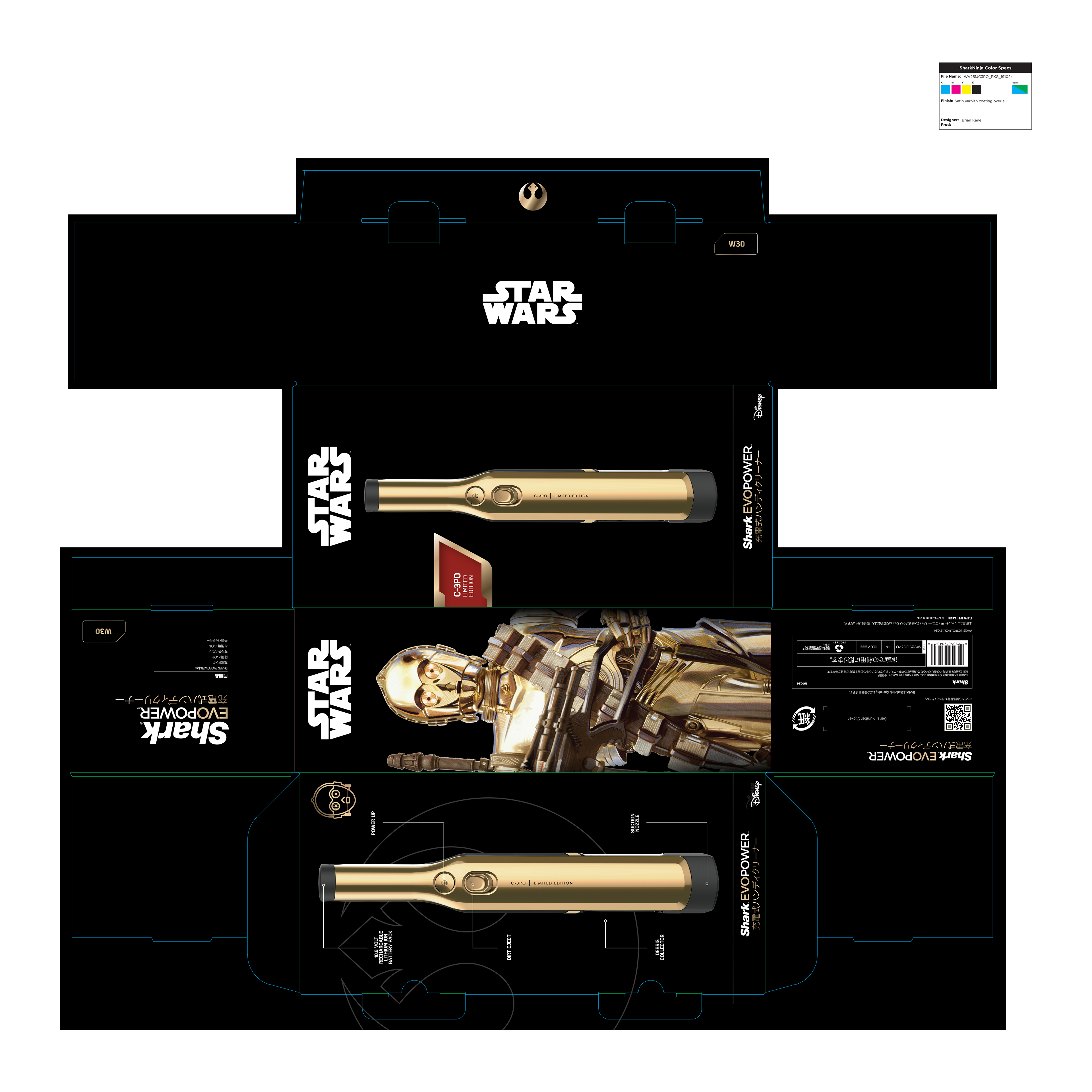 Kylo Ren themed package: 1-color tray with vacuum-formed inner tray + 4-color outer sleeve.