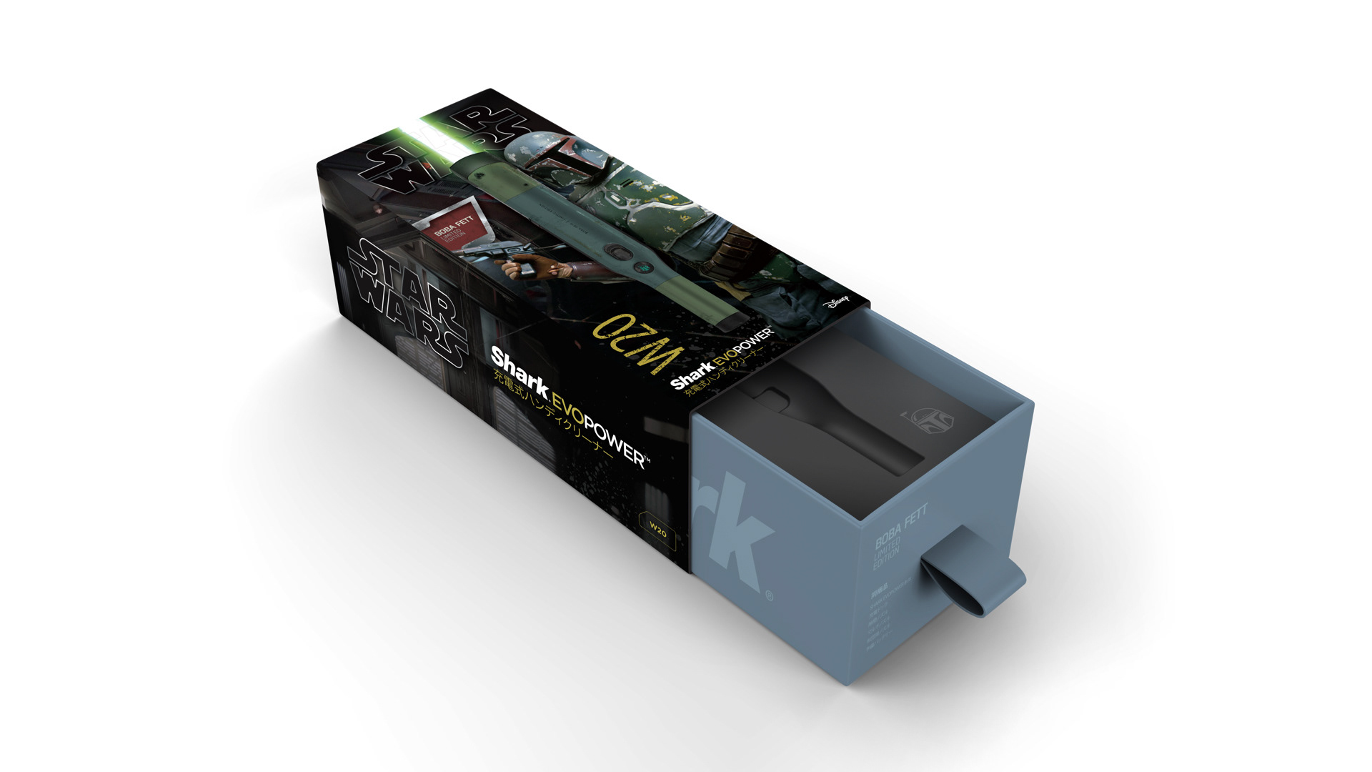 Boba Fett themed package: 1-color tray with vacuum-formed inner tray + 4-color outer sleeve.